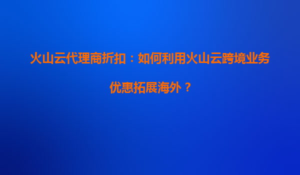 2025-07-04火山云代理商折扣:如何利用火山云跨境業(yè)務(wù)優(yōu)惠拓展海外? 一、火山云的核心優(yōu)勢解析 火山云作為字節(jié)跳動旗下的云計算服務(wù)品牌,依托全球化基礎(chǔ)設(shè)施和本土化服務(wù)能力,為跨境企業(yè)提供三大核心優(yōu)勢: ...