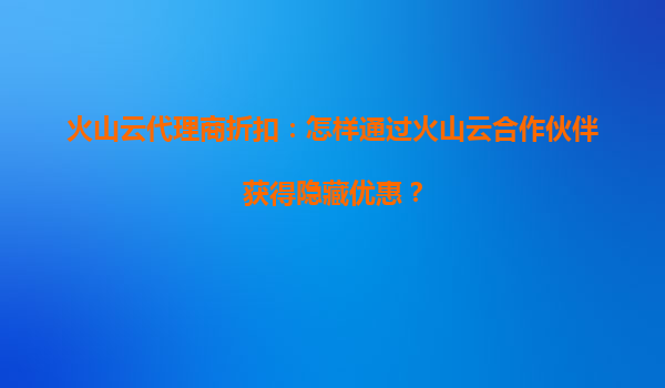 2025-07-04火山云代理商折扣:哪些行業(yè)解決方案享受火山云專項優(yōu)惠? 一、火山云與代理商的核心優(yōu)勢 火山云作為字節(jié)跳動旗下的云計算服務(wù)品牌,憑借強大的技術(shù)底座和全球...