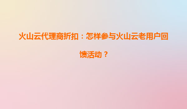 2025-07-03火山云代理商折扣:老用戶專(zhuān)享回饋活動(dòng)詳解 作為國(guó)內(nèi)領(lǐng)先的云計(jì)算服務(wù)提供商,火山云始終致力于為用戶提供高品質(zhì)的云服務(wù)體驗(yàn)。為感謝老用戶的長(zhǎng)期支持,火山云特別推出了老用戶回饋活動(dòng),通過(guò)代理...