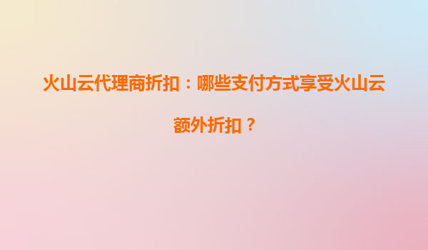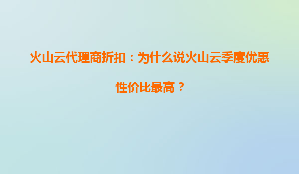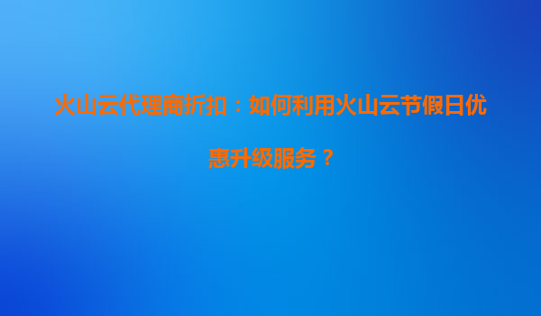 2025-07-03火山云代理商折扣:如何利用火山云節(jié)假日優(yōu)惠升級(jí)服務(wù)? 一、火山云與代理商的核心優(yōu)勢(shì) 火山云作為國(guó)內(nèi)領(lǐng)先的云計(jì)算服務(wù)商,以其高穩(wěn)定性、彈性擴(kuò)展和全球化覆蓋能力著稱。而火山云代理商則是企業(yè)...