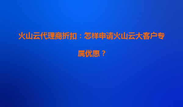 2025-07-02火山云代理商折扣:如何申請(qǐng)大客戶專(zhuān)屬優(yōu)惠? 在數(shù)字化轉(zhuǎn)型浪潮中,云計(jì)算服務(wù)已成為企業(yè)降本增效的核心工具。作為字節(jié)跳動(dòng)旗下的云計(jì)算品牌,火山云憑借技術(shù)實(shí)力和場(chǎng)景化解決方案,成為眾多企業(yè)的優(yōu)先選擇。本文將...
