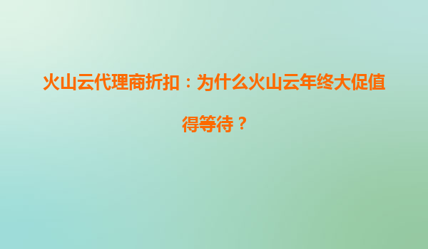 2025-07-02火山云代理商折扣:為什么火山云年終大促值得等待? 在數(shù)字化轉型加速的當下,云計算服務已成為企業(yè)降本增效的核心工具。火山云作為國內(nèi)領先的云服務提供商,憑借技術創(chuàng)新與高性價比持續(xù)吸引用戶關注。而...