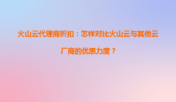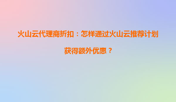 4008-020-360 火山云代理商折扣:為什么火山云新用戶首單優(yōu)惠力度最大? 一、引言:云計算市場的競爭與火山云的策略 在日益激烈的云計算市場競爭中,各大云服務提供商紛紛推出各類優(yōu)惠政策以吸引用戶...