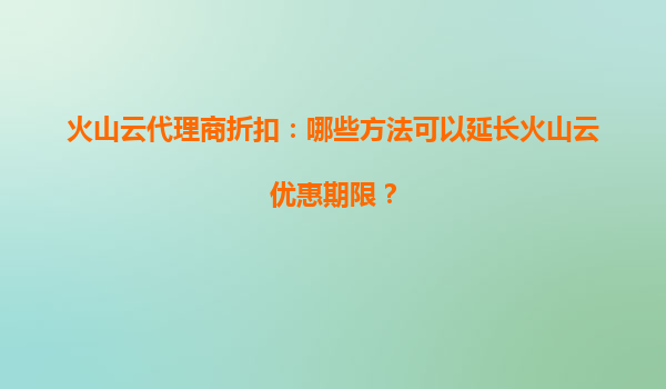 2025-07-02如何延長火山云代理商折扣?5種方法助您最大化優(yōu)惠期限 一、了解火山云代理商的獨特優(yōu)勢 作為云計算服務領域的創(chuàng)新者,火山云通過代理商體系為用戶提供了三大核心價值:...