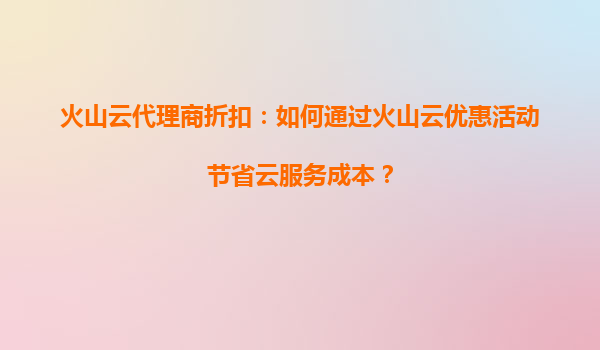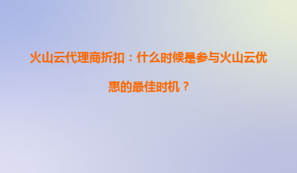 2025-07-01火山云代理商折扣:參與優(yōu)惠的最佳時(shí)機(jī) 火山云作為國(guó)內(nèi)領(lǐng)先的云計(jì)算服務(wù)提供商,憑借其高性能、穩(wěn)定性和靈活的解決方案,吸引了眾多企業(yè)和開(kāi)發(fā)者。通過(guò)代理商渠道購(gòu)買火山云服務(wù),往往能享受額外折扣和增值服務(wù)。那...