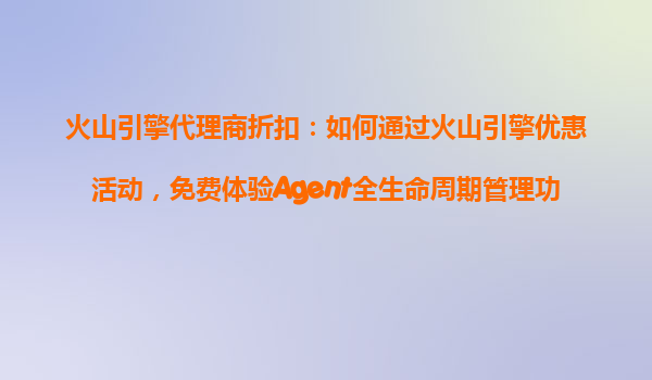 4008-020-360 火山引擎代理商折扣:如何通過優(yōu)惠活動免費體驗Agent全生命周期管理功能? 一、火山引擎的核心優(yōu)勢 火山引擎作為字節(jié)跳動旗下的企業(yè)級技術(shù)服務(wù)平臺,憑借其強大的技術(shù)積淀和豐富的業(yè)務(wù)場景經(jīng)驗,為企業(yè)...