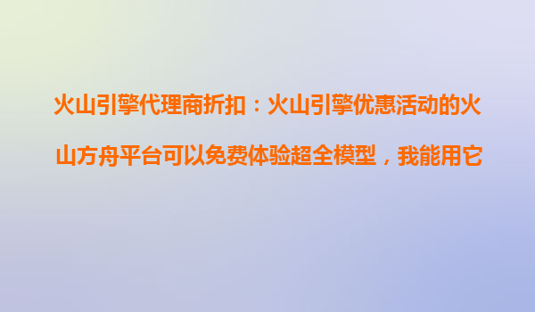 2025-10-23火山引擎代理商折扣加持:如何通過火山方舟免費體驗構(gòu)建AIGC產(chǎn)品? 一、火山方舟:免費體驗超全模型的核心優(yōu)勢 火山引擎旗下的火山方舟平臺(VolcanoArk)近期...