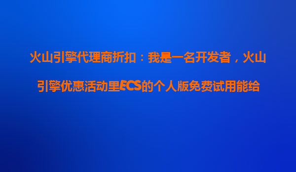 2025-10-23火山引擎代理商折扣:游戲開發(fā)者的ECS免費試用能否滿足需求? 一、火山引擎ECS免費試用的核心價值 火山引擎為開發(fā)者提供ECS(彈性計算服務(wù))免費試用活動,通常包含1-2核CPU、4-8GB內(nèi)存配置的實例,...
