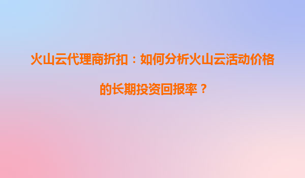 2025-10-21火山云代理商折扣:長期投資回報率分析指南 一、理解火山云的核心優(yōu)勢 火山云作為領(lǐng)先的云計算服務(wù)提供商,其技術(shù)架構(gòu)和資源規(guī)模具備顯著競爭力。首先,其全球分布式數(shù)據(jù)中心網(wǎng)絡(luò)...
