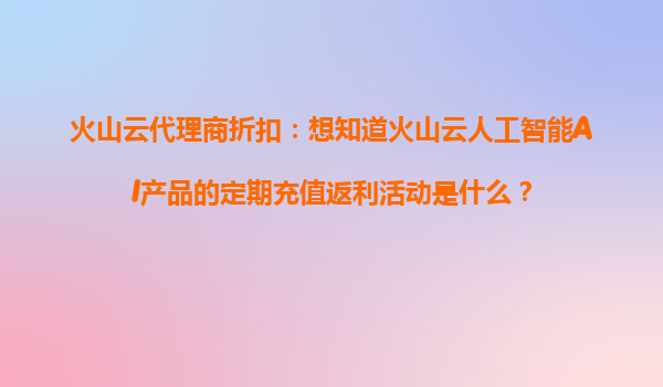 4008-020-360 火山云AI產(chǎn)品代理商折扣:定期充值返利活動詳解 一、火山云AI的核心優(yōu)勢 作為國內(nèi)領(lǐng)先的云計算與人工智能服務(wù)提供商,火山云憑借以下優(yōu)勢成為企業(yè)數(shù)字化轉(zhuǎn)型的首選伙伴: 技術(shù)領(lǐng)先性:基于字節(jié)跳動...