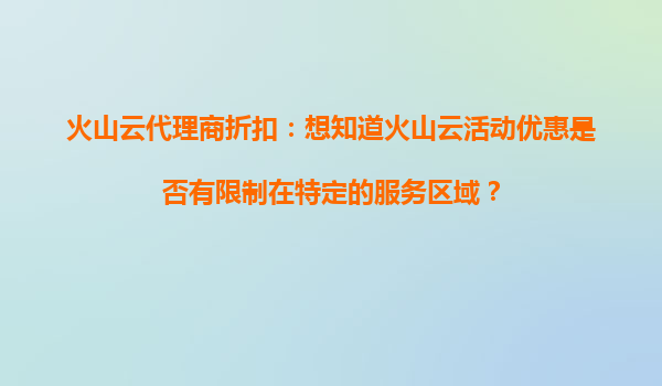2025-10-22火山云代理商折扣:活動優(yōu)惠是否受服務(wù)區(qū)域限制? 一、火山云的服務(wù)區(qū)域覆蓋 火山云作為國內(nèi)領(lǐng)先的云計算服務(wù)提供商,其基礎(chǔ)設(shè)施覆蓋全球多個區(qū)域,包括中國大...