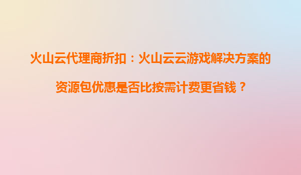 2025-10-21火山云代理商折扣:火山云云游戲解決方案的資源包優(yōu)惠是否比按需計(jì)費(fèi)更省錢? 引言 隨著云計(jì)算技術(shù)的快速發(fā)展,云游戲作為一種新興的游戲形式,逐漸成為行業(yè)的熱點(diǎn)?;鹕皆谱鳛閲?guó)內(nèi)領(lǐng)先...