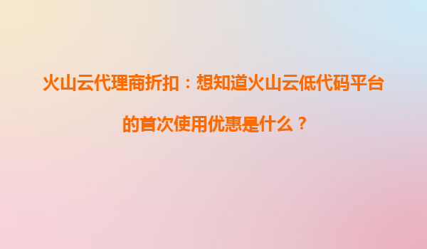 2025-10-21火山云低代碼平臺(tái)首次使用優(yōu)惠及代理商優(yōu)勢(shì)解析 一、火山云低代碼平臺(tái)核心價(jià)值 火山云低代碼平臺(tái)是字節(jié)跳動(dòng)旗下的企業(yè)級(jí)數(shù)字化解決方案,通過可視化拖拽和模塊化組件,幫助客戶快速搭建ERP、CRM、OA等系...