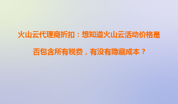 4008-020-360 火山云代理商折扣:活動(dòng)價(jià)格是否包含所有稅費(fèi)及隱藏成本分析 一、火山云代理商折扣的吸引力 火山云作為國(guó)內(nèi)領(lǐng)先的云計(jì)算服務(wù)商,憑借其穩(wěn)定的產(chǎn)品性能和靈活的資源調(diào)配能力,吸引了大量企業(yè)用戶。其定期推...