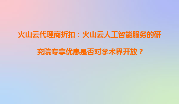 2025-10-21火山云人工智能服務(wù):助力學(xué)術(shù)研究的智能伙伴 火山云作為字節(jié)跳動(dòng)旗下的云計(jì)算品牌,憑借其強(qiáng)大的技術(shù)實(shí)力和豐富的資源積累,為各行業(yè)提供優(yōu)質(zhì)的云服務(wù)解決方案。其中,火山云人工智能服務(wù)尤其受到學(xué)術(shù)界研究人員的...