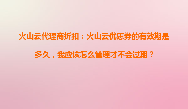 2025-10-21火山云代理商折扣:火山云優(yōu)惠券的有效期是多久,我應(yīng)該怎么管理才不會(huì)過期? 一、火山云優(yōu)惠券的有效期解析 火山云優(yōu)惠券是代理商及用戶享受折扣的重要工具,其有效期通常由火山云官方或代理商根據(jù)活動(dòng)規(guī)...