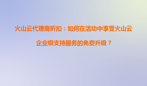 2025-10-20火山云代理商折扣:如何在活動(dòng)中享受火山云企業(yè)級(jí)支持服務(wù)的免費(fèi)升級(jí)? 一、火山云的核心優(yōu)勢(shì) 火山云作為領(lǐng)先的云計(jì)算服務(wù)提供商,憑借以下優(yōu)勢(shì)成為企業(yè)數(shù)字化轉(zhuǎn)型的首選: 高性能計(jì)算資源-全球部...