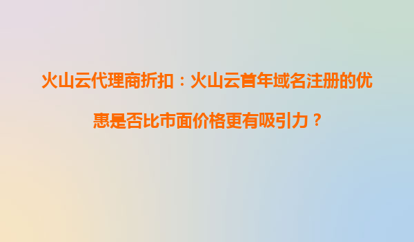 2025-10-19火山云代理商折扣:火山云首年域名注冊的優(yōu)惠是否比市面價格更有吸引力? 一、火山云首年域名注冊優(yōu)惠的核心優(yōu)勢 火山云作為云計算服務提供商,其域名注冊服務...