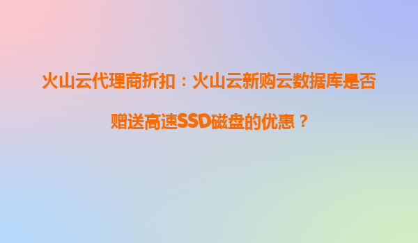 2025-10-18火山云代理商折扣:火山云新購云數(shù)據(jù)庫是否贈送高速SSD磁盤的優(yōu)惠? 火山云代理商折扣的核心優(yōu)勢 火山云作為國內(nèi)領先的云計算服務提供商,一直致力于為企業(yè)用戶提供高性能、高可靠性...
