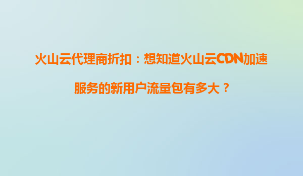 4008-020-360 火山云代理商折扣:新用戶流量包詳解與CDN加速服務優(yōu)勢 一、火山云CDN加速服務的新用戶流量包容量 火山云為新用戶提供極具吸引力的流量包優(yōu)惠,幫助用戶低成本體驗高性能CDN加速服務。目前,新用戶注冊...