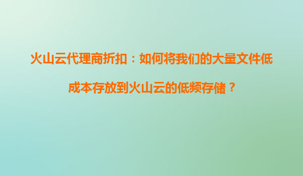 2025-10-19火山云代理商折扣:如何低成本存儲大量文件到火山云低頻存儲 在數(shù)字化時代,數(shù)據(jù)存儲需求呈爆炸式增長,企業(yè)如何高效、低成本地存儲海量文件成為關鍵問題?;鹕皆频牡皖l存儲服務憑借其卓越的性能和極具競爭力的價格...