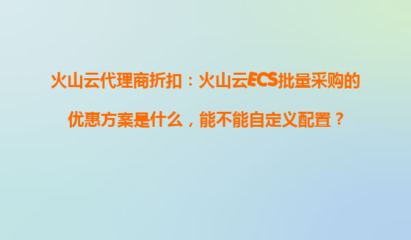 2025-10-17火山云代理商折扣:火山云ECS批量采購(gòu)的優(yōu)惠方案與自定義配置解析 一、火山云ECS批量采購(gòu)的優(yōu)惠方案 火山云作為國(guó)內(nèi)領(lǐng)先的云計(jì)算服務(wù)商,為企業(yè)用戶提供了靈活的ECS(彈性計(jì)算服務(wù))批量采購(gòu)優(yōu)惠...