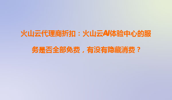 2025-10-18火山云代理商折扣:火山云AI體驗(yàn)中心的服務(wù)是否全部免費(fèi),有沒(méi)有隱藏消費(fèi)? 火山云AI體驗(yàn)中心的服務(wù)模式 火山云是字節(jié)跳動(dòng)旗下的云計(jì)算服務(wù)品牌,提供包括存儲(chǔ)、計(jì)算、AI等在內(nèi)的多種云服務(wù)。其AI...