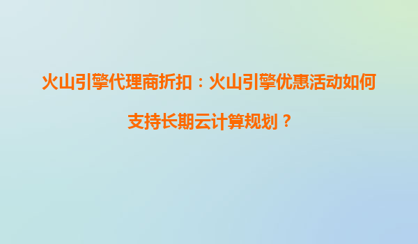 2025-10-16火山引擎代理商折扣:火山引擎優(yōu)惠活動如何支持長期云計算規(guī)劃? 一、火山引擎的核心優(yōu)勢助力長期云計算規(guī)劃 火山引擎作為字節(jié)跳動旗下的云計算品牌,憑借其在海量數(shù)據(jù)處理、高并發(fā)場景支持以...