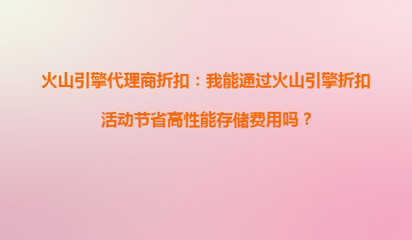 2025-10-16火山引擎代理商折扣:我能通過火山引擎折扣活動節(jié)省高性能存儲費用嗎? 隨著企業(yè)數(shù)字化轉(zhuǎn)型的加速,云計算服務成為越來越多企業(yè)的首選。火山引擎作為字節(jié)跳動推出的云服務平臺,憑借其高性能...