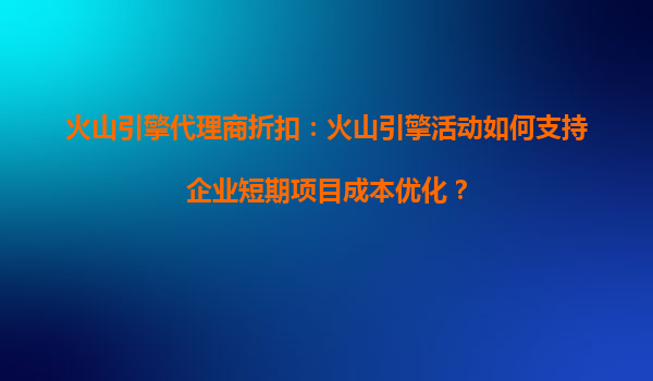 2025-10-16火山引擎代理商折扣:火山云如何助力企業(yè)短期項目成本優(yōu)化? 一、企業(yè)短期項目的成本挑戰(zhàn) 在企業(yè)運營中,短期項目(如促銷活動、臨時研發(fā)測試、季節(jié)性業(yè)務擴展等)往往面臨較高的資...