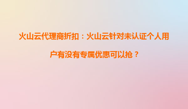 4008-020-360 火山云代理商折扣揭秘:未認證個人用戶專屬優(yōu)惠及核心優(yōu)勢解析 一、火山云未認證個人用戶能否享受專屬優(yōu)惠? 針對標題中的核心問題"火山云針對未認證個人用戶有沒有專屬優(yōu)惠",答案是肯定的?;鹕?..