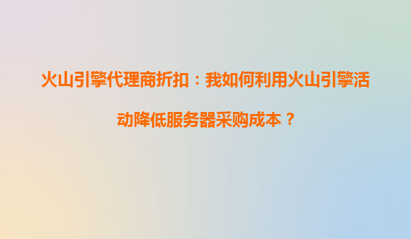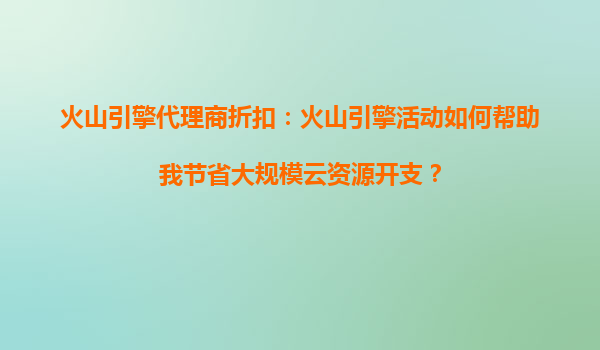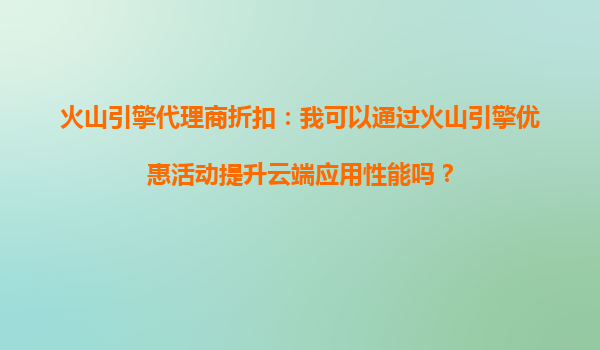 2025-10-11火山引擎代理商折扣:我可以通過火山引擎優(yōu)惠活動獲得長期折扣嗎? 一、火山引擎代理商折扣的核心優(yōu)勢 火山引擎作為字節(jié)跳動旗下的云計(jì)算服務(wù)品牌,憑借其強(qiáng)大的技術(shù)支持和豐富的行業(yè)經(jīng)驗(yàn),為企業(yè)...
