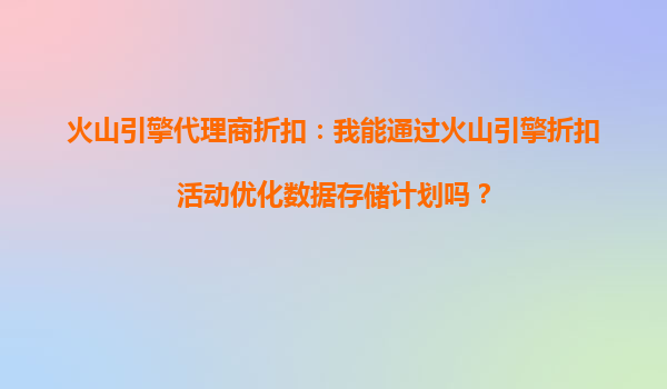 2025-10-12火山引擎代理商折扣:如何通過折扣活動優(yōu)化數(shù)據(jù)存儲計(jì)劃? 一、火山引擎的數(shù)據(jù)存儲服務(wù)概述 火山引擎作為字節(jié)跳動旗下的云服務(wù)平臺,提供了一系列高效、安全且...