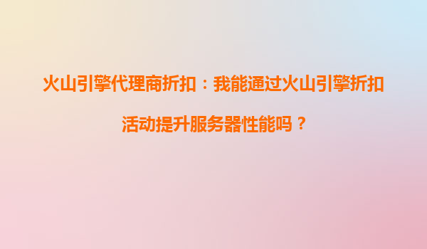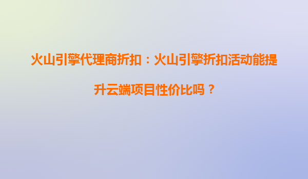 2025-10-11火山引擎代理商折扣:火山引擎折扣活動能提升云端項目性價比嗎? 引言:云端服務(wù)的性價比之爭 在數(shù)字化轉(zhuǎn)型的浪潮中,企業(yè)上云已成為降本增效的關(guān)鍵選擇。然而...