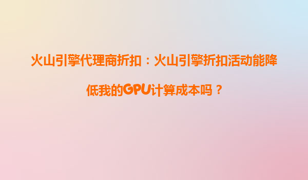 2025-10-11火山引擎代理商折扣:火山引擎折扣活動能降低我的GPU計算成本嗎? 引言 在當(dāng)今數(shù)字化時代,GPU計算已成為人工智能、大數(shù)據(jù)分析和高性能計算等領(lǐng)域不可或缺的一...