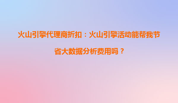 2025-10-10火山引擎代理商折扣:火山引擎活動能幫我節(jié)省大數(shù)據(jù)分析費用嗎? 在數(shù)字化轉(zhuǎn)型的浪潮中,大數(shù)據(jù)分析已成為企業(yè)提升競爭力的核心工具。然而,高昂的計算資源成本往往讓中小企業(yè)望而卻步?;鹕揭孀鳛樽止?jié)跳動旗...