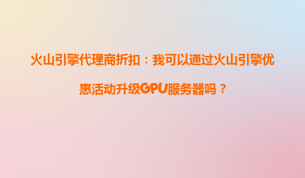 2025-10-10火山引擎代理商折扣:升級GPU服務(wù)器的最佳選擇 在數(shù)字化轉(zhuǎn)型的浪潮中,企業(yè)對高性能計算資源的需求日益增長,尤其是GPU服務(wù)器在AI訓(xùn)練、圖形渲染等場景中的重要性愈發(fā)凸顯?;鹕揭孀鳛樽止?jié)跳動旗下的云計算品...