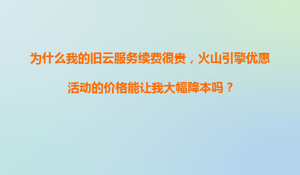 2025-11-05為什么我的舊云服務續(xù)費很貴,火山引擎優(yōu)惠活動能大幅降本嗎? 一、傳統(tǒng)云服務續(xù)費貴的三大核心原因 1.定價機制不透明:傳統(tǒng)云廠商早期通過低價吸引用戶,但在續(xù)費時往往恢復原價,且階...