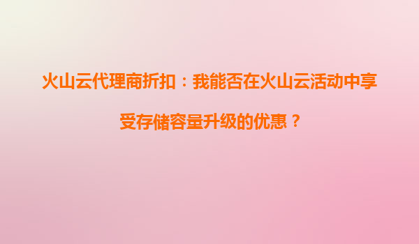 2025-10-03火山云代理商折扣:存儲(chǔ)容量升級(jí)優(yōu)惠詳解 在數(shù)字化轉(zhuǎn)型的浪潮中,企業(yè)對(duì)于云存儲(chǔ)的需求日益增長(zhǎng)?;鹕皆谱鳛轭I(lǐng)先的云服務(wù)提供商,不僅提供穩(wěn)定高效的存儲(chǔ)解決方案,還通過(guò)代理商折扣和活動(dòng)優(yōu)惠,為用戶(hù)帶來(lái)更多...