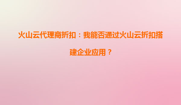 4008-020-360 火山云代理商折扣:我能否通過(guò)火山云折扣搭建企業(yè)應(yīng)用? 一、火山云代理商折扣的核心價(jià)值 火山云作為字節(jié)跳動(dòng)旗下的云計(jì)算服務(wù)平臺(tái),憑借其強(qiáng)大的技術(shù)能力和豐富的資源生態(tài),為企業(yè)用戶(hù)...