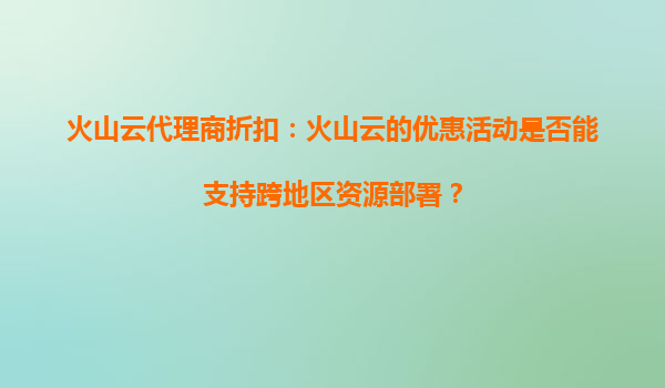 2025-10-03火山云代理商折扣:火山云的優(yōu)惠活動(dòng)是否能支持跨地區(qū)資源部署? 一、火山云的核心優(yōu)勢(shì)與跨地區(qū)部署能力 火山云作為字節(jié)跳動(dòng)旗下的云計(jì)算服務(wù)品牌,憑借其全球化基礎(chǔ)設(shè)施布局和彈性資源...