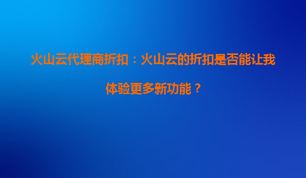 2025-10-03火山云代理商折扣:解鎖更多新功能的鑰匙 引言:折扣不僅是價(jià)格優(yōu)惠,更是功能體驗(yàn)的延伸 在數(shù)字化轉(zhuǎn)型的浪潮中,云計(jì)算服務(wù)已成為企業(yè)降本增效的核心工具?;?..