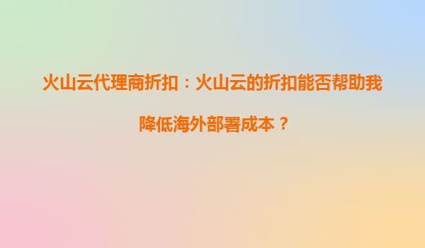 2025-10-03火山云代理商折扣:火山云的折扣能否幫助我降低海外部署成本? 在全球化的商業(yè)環(huán)境中,企業(yè)越來(lái)越需要在海外部署業(yè)務(wù)以拓展市場(chǎng)。然而,海外部署的成本問(wèn)題一直是許多企業(yè)面臨的挑戰(zhàn)?;鹕皆萍捌浯砩烫峁┑恼?..