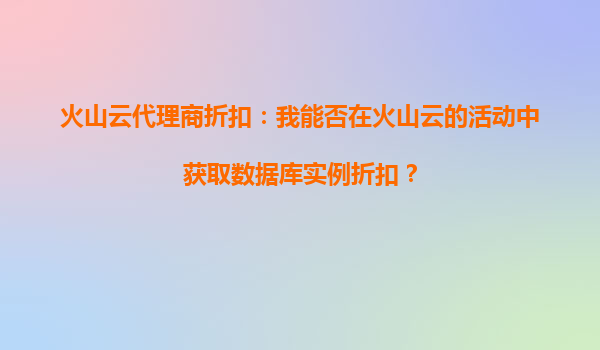 2025-10-03<Talk>火山云代理商折扣:數(shù)據(jù)庫(kù)實(shí)例優(yōu)惠不容錯(cuò)過(guò) 在數(shù)字化轉(zhuǎn)型浪潮中,企業(yè)上云已成為必然趨勢(shì)。作為國(guó)內(nèi)領(lǐng)先的云計(jì)算服務(wù)提供商,火山云憑借其強(qiáng)大的技術(shù)實(shí)力和豐富的產(chǎn)品矩陣,為企業(yè)用戶提供穩(wěn)定、高效、安...