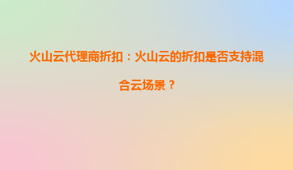 2025-10-02火山云代理商折扣:火山云的折扣是否支持混合云場(chǎng)景? 一、火山云的核心優(yōu)勢(shì)與混合云場(chǎng)景適配性 火山云作為字節(jié)跳動(dòng)旗下的云計(jì)算服務(wù)品牌,憑借其彈性計(jì)算、全球加速網(wǎng)絡(luò)和AI能力集成等核心優(yōu)勢(shì),已成為企...