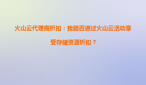 4008-020-360 火山云代理商折扣:如何通過(guò)活動(dòng)享受存儲(chǔ)資源優(yōu)惠? 在數(shù)字化轉(zhuǎn)型的浪潮中,企業(yè)對(duì)于云存儲(chǔ)資源的需求日益增長(zhǎng)?;鹕皆谱鳛閲?guó)內(nèi)領(lǐng)先的云服務(wù)提供商,不僅gedenken不僅提供了高性能的存儲(chǔ)解決方案,還通過(guò)代理商折扣...