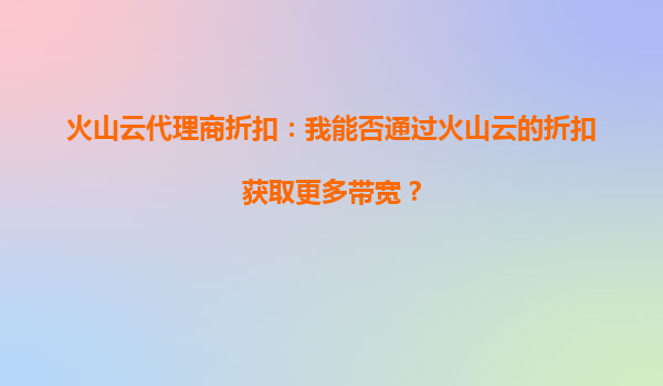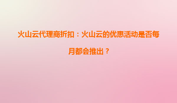 2025-10-01火山云代理商折扣:火山云的優(yōu)惠活動(dòng)是否每月都會(huì)推出? 火山云與代理商的雙贏合作模式 火山云作為國(guó)內(nèi)領(lǐng)先的云計(jì)算服務(wù)提供商,憑借其高性能、高可靠性的云服...