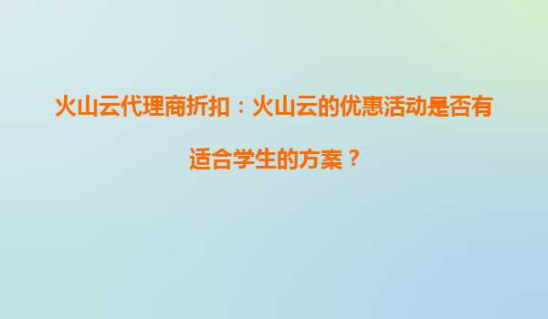 2025-10-01火山云代理商折扣:火山云的優(yōu)惠活動(dòng)是否有適合學(xué)生的方案? 隨著云計(jì)算技術(shù)的快速發(fā)展,越來(lái)越多的企業(yè)和個(gè)人開(kāi)始依賴云服務(wù)來(lái)滿足存儲(chǔ)、計(jì)算和網(wǎng)絡(luò)需求?;鹕皆谱鳛閲?guó)內(nèi)領(lǐng)先的云服務(wù)提供商之一,憑借其高性能...