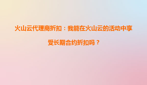 2025-10-01火山云代理商折扣:長(zhǎng)期aharvest合約折扣詳解與平臺(tái)優(yōu)勢(shì) 一、火山云長(zhǎng)期合約折扣 火山將云作為字節(jié)跳動(dòng)旗下的云計(jì)算服務(wù)品牌,經(jīng)常推出針對(duì)代理商和企業(yè)的優(yōu)惠活動(dòng)。其中...