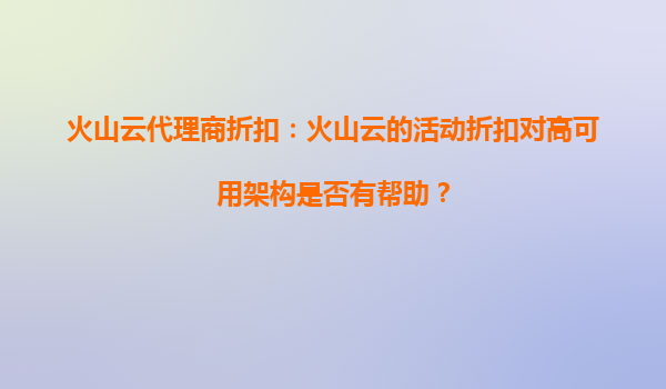 2025-09-30火山云代理商折扣:火山云的活動折扣對高可用架構(gòu)是否有幫助? 一、火山云的核心優(yōu)勢與高可用架構(gòu) 火山云作為字節(jié)跳動旗下的云計算服務(wù)品牌,憑借其全球化基礎(chǔ)設(shè)施、高性能計算能力和彈性資源調(diào)度,成為企...